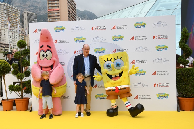 Ksiaze Albert z dziecmi na 20. urodzinach Spongebob - 59th Monte-Carlo Television Festival