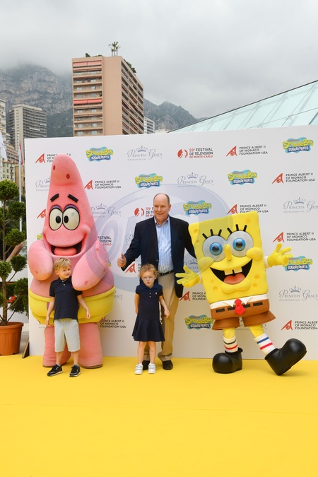Ksiaze Albert z dziecmi na 20. urodzinach Spongebob - 59th Monte-Carlo Television Festival