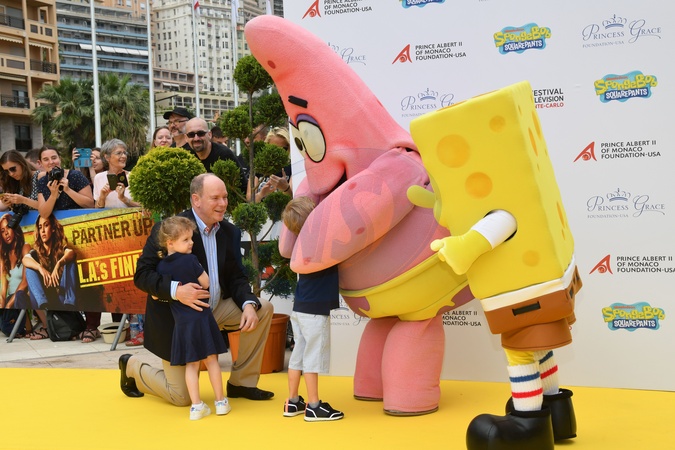 Ksiaze Albert z dziecmi na 20. urodzinach Spongebob - 59th Monte-Carlo Television Festival