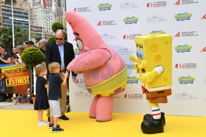 Ksiaze Albert z dziecmi na 20. urodzinach Spongebob - 59th Monte-Carlo Television Festival