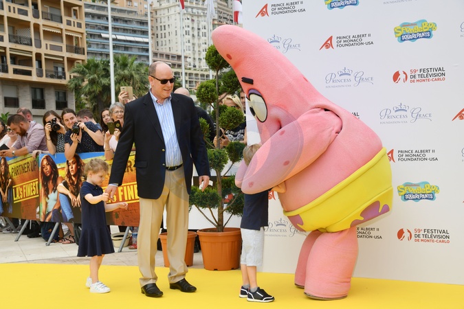 Ksiaze Albert z dziecmi na 20. urodzinach Spongebob - 59th Monte-Carlo Television Festival