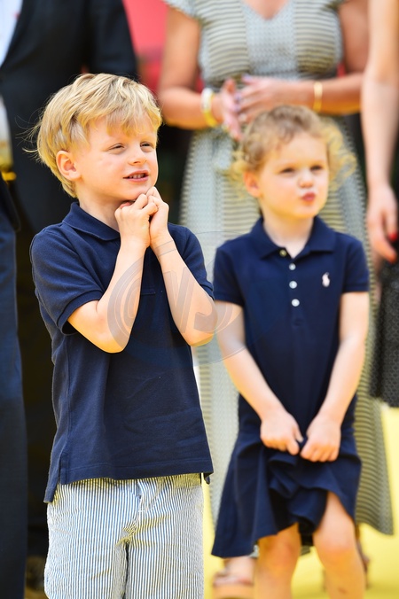 Ksiaze Albert z dziecmi na 20. urodzinach Spongebob - 59th Monte-Carlo Television Festival