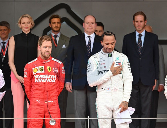 Ksiaze Albert, ksiezniczka Charlene, Pierre Casiraghi, Louis Ducruet, Andrea Casiraghi, Lewis Hamilton