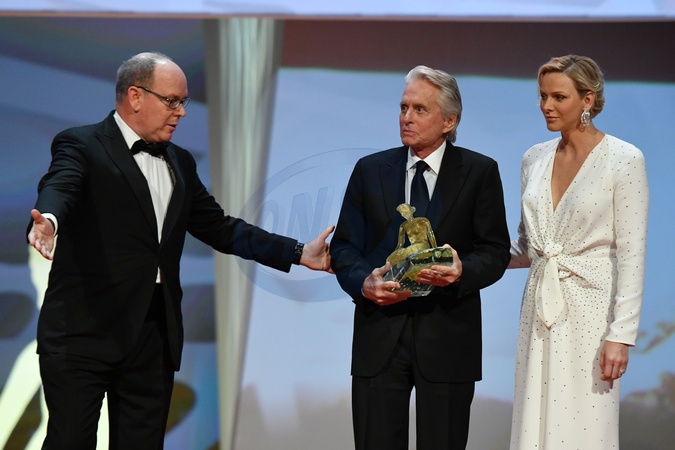 Ksiaze Albert, ksiezna Charlene, Michael Douglas 03.jpg