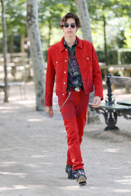 Paris Brosnan w czerwieni przed pokazem Berluti