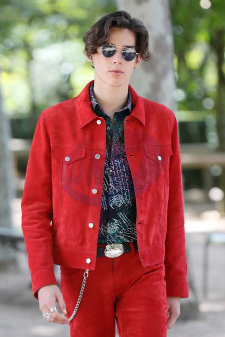 Paris Brosnan w czerwieni przed pokazem Berluti