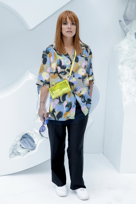 Lily Allen w rudych wlosach z grzywka na pokazie DIOR