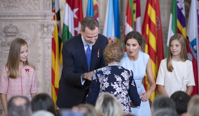 Krol Filip i Letizia z corkami na Order Civil Merit