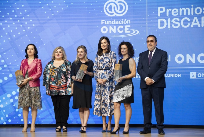 Krolowa Letizia we wzorzystej sukience na ceremonii Discapnet Awards