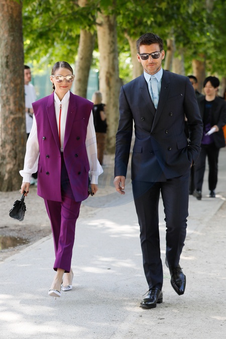Olivia Palermo z mezem w drodze na pokaz Berluti