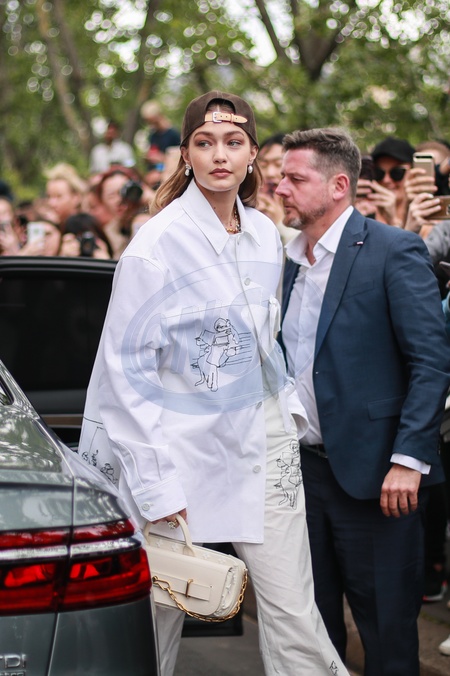 Gigi Hadid cala na bialo wraca z pokazu Louis Vuitton