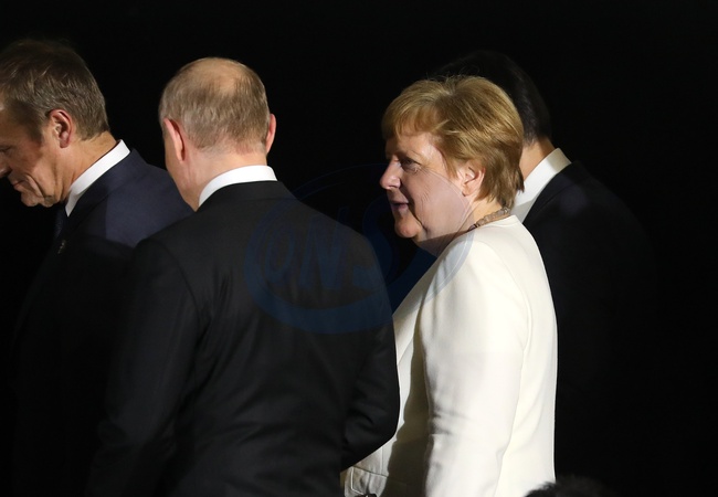 Donatd Tusk, Vladimir Putin, Angela Merkel