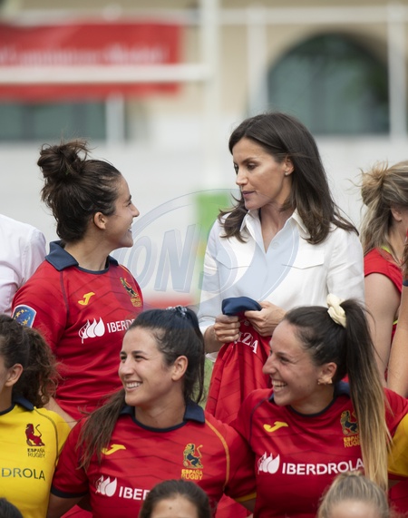 Krolowa Letizia na meczu rugby