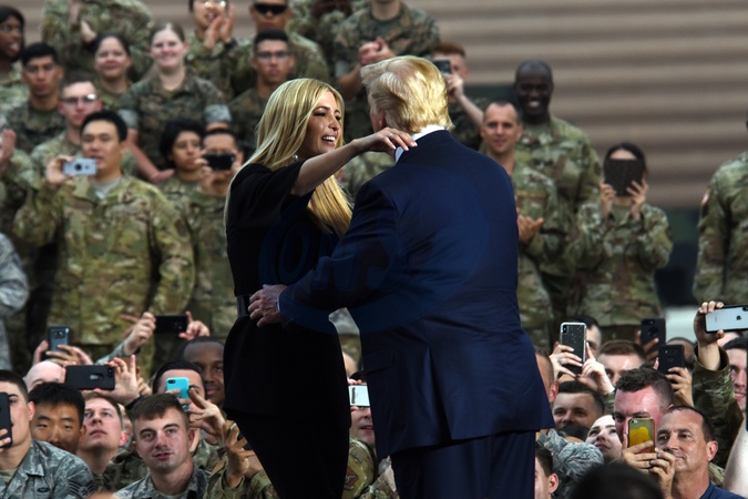 Trump z corka na spotkaniu z zolnierzami w Korei