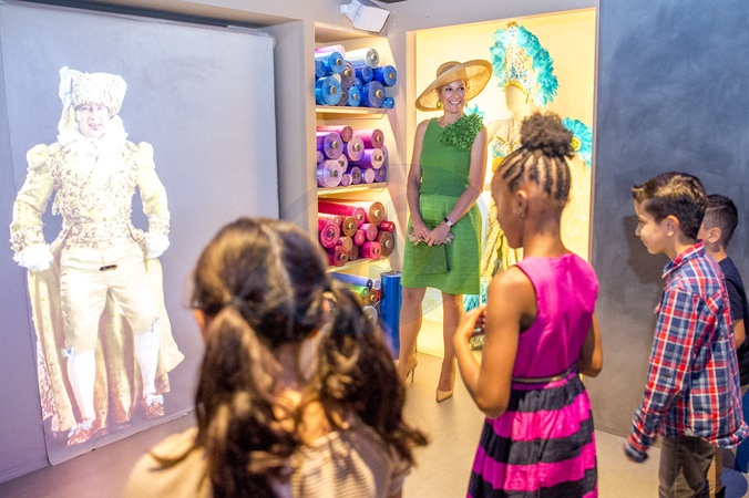 Krolowa Maxima w zielonej sukience na wystawie Superstraat w Wereld museum w Rotterdam