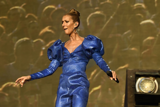 Celine Dion w niebieskim kombinezonie na British Summertime 2019