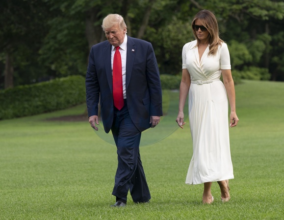 Trumpowie wracaja z wekendu w swojej rezydencji w Bedminster