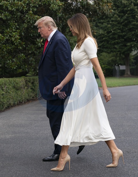 Trumpowie wracaja z wekendu w swojej rezydencji w Bedminster