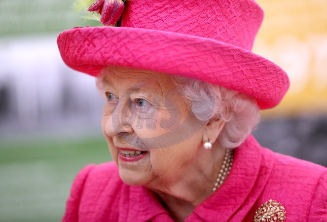 Krolowa Elzbieta II na rozowo w National Institute of Agricultural Botany