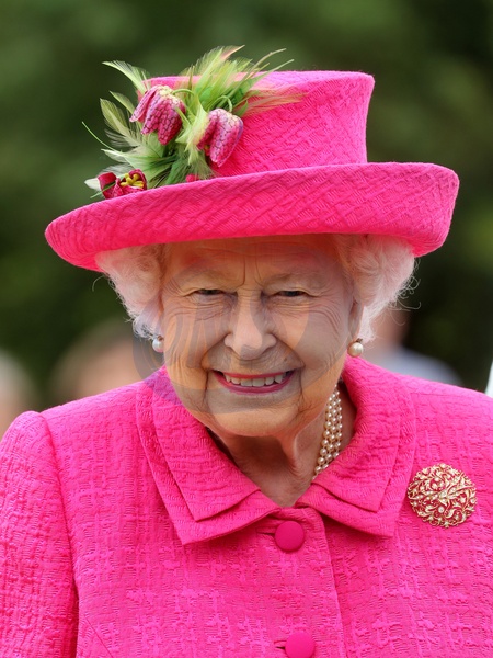 Krolowa Elzbieta II na rozowo w National Institute of Agricultural Botany