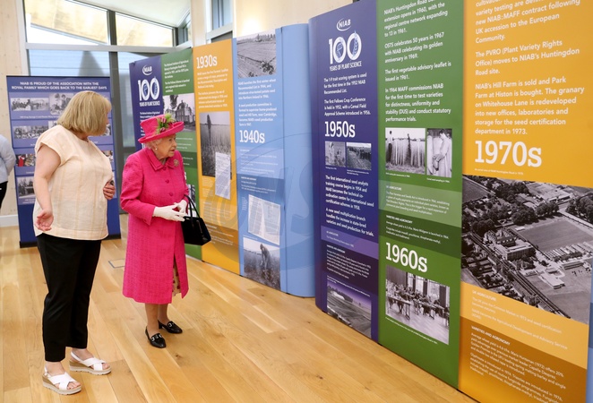 Krolowa Elzbieta II na rozowo w National Institute of Agricultural Botany