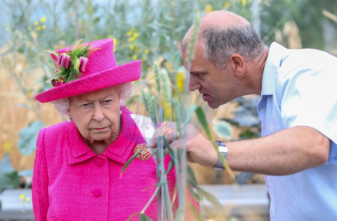 Krolowa Elzbieta II na rozowo w National Institute of Agricultural Botany