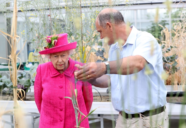 Krolowa Elzbieta II na rozowo w National Institute of Agricultural Botany