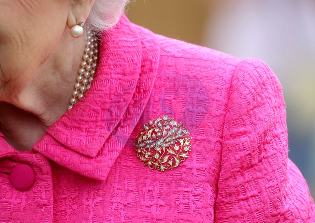 Krolowa Elzbieta II na rozowo w National Institute of Agricultural Botany