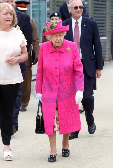 Krolowa Elzbieta II na rozowo w National Institute of Agricultural Botany