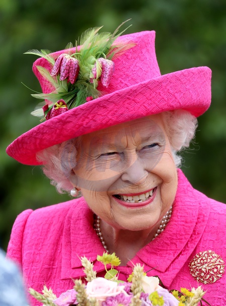 Krolowa Elzbieta II na rozowo w National Institute of Agricultural Botany