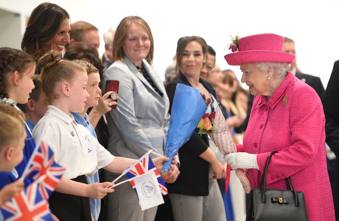 Krolowa Elzbieta II na rozowo w National Institute of Agricultural Botany