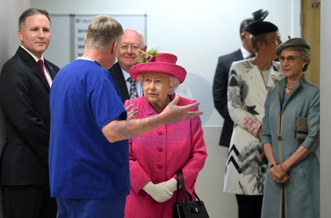 Krolowa Elzbieta II na rozowo w National Institute of Agricultural Botany