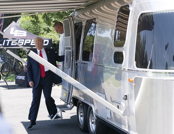 Donald J. Trump przemawia na 3. dorocznej wystawie produktow w Bialym Domu