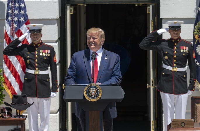 Donald J. Trump przemawia na 3. dorocznej wystawie produktow w Bialym Domu