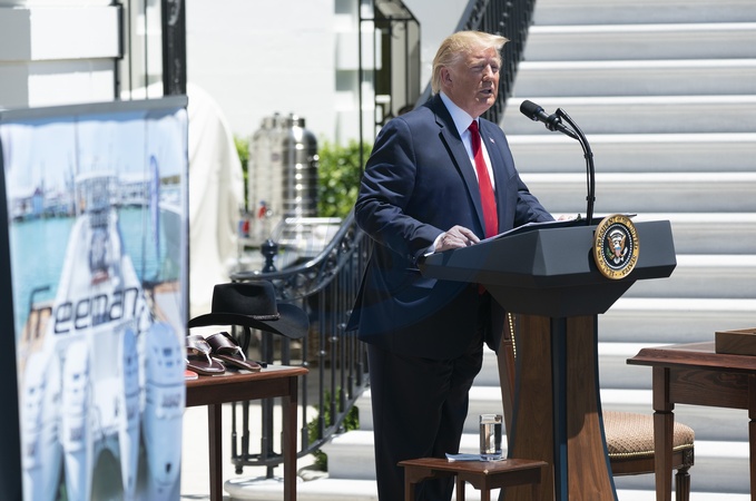 Donald J. Trump przemawia na 3. dorocznej wystawie produktow w Bialym Domu