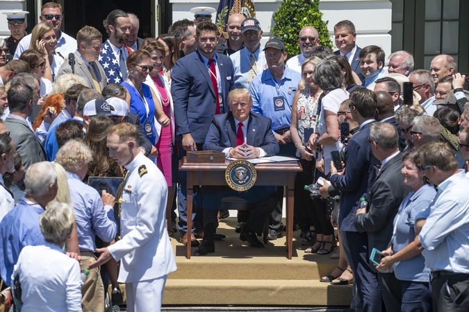 Donald J. Trump przemawia na 3. dorocznej wystawie produktow w Bialym Domu