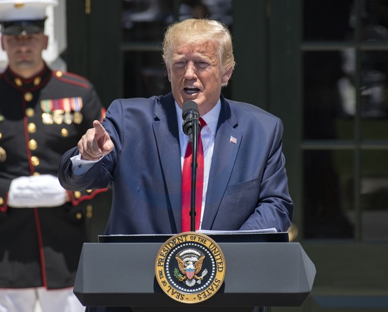 Donald J. Trump przemawia na 3. dorocznej wystawie produktow w Bialym Domu
