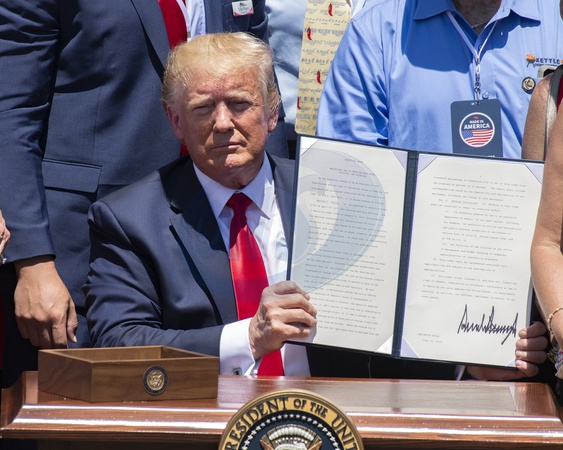 Donald J. Trump przemawia na 3. dorocznej wystawie produktow w Bialym Domu