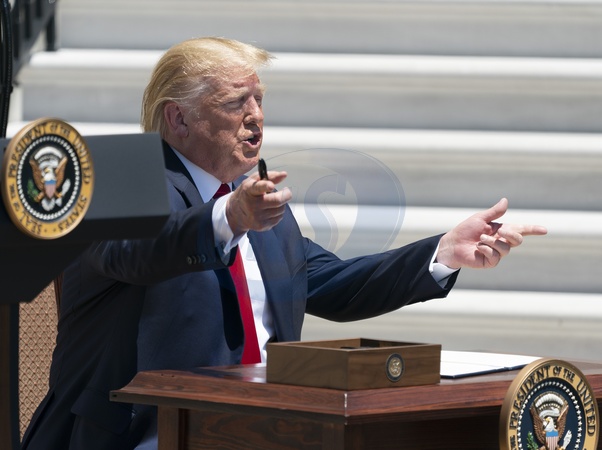 Donald J. Trump przemawia na 3. dorocznej wystawie produktow w Bialym Domu