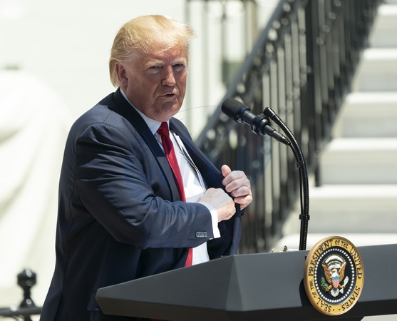 Donald J. Trump przemawia na 3. dorocznej wystawie produktow w Bialym Domu