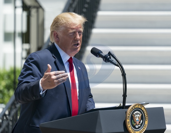 Donald J. Trump przemawia na 3. dorocznej wystawie produktow w Bialym Domu