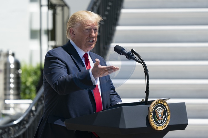 Donald J. Trump przemawia na 3. dorocznej wystawie produktow w Bialym Domu