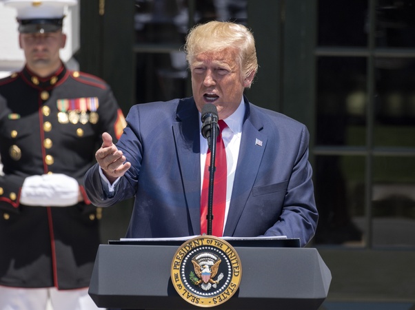 Donald J. Trump przemawia na 3. dorocznej wystawie produktow w Bialym Domu