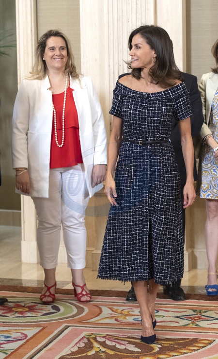 Krolowa Letizia w kraciastej sukience podczas Kongresu Miedzynarodowego Stowarzyszenia Studiow Komunikacji Spolecznej