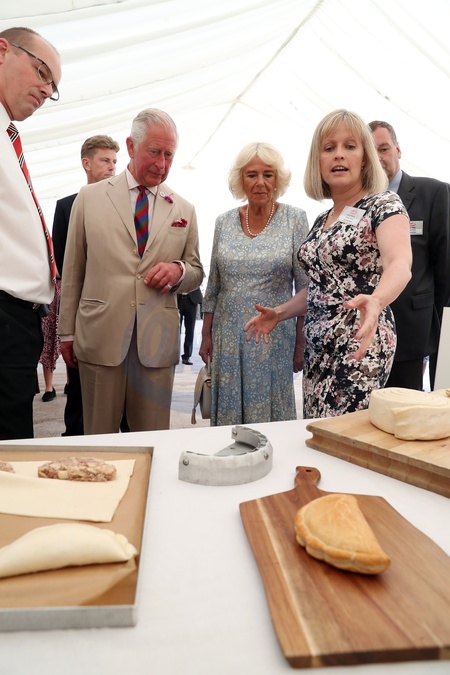 Ksiezna Camilla lepi pieroga, przyjecie z okazji 50-lecia piekarni Ginsters