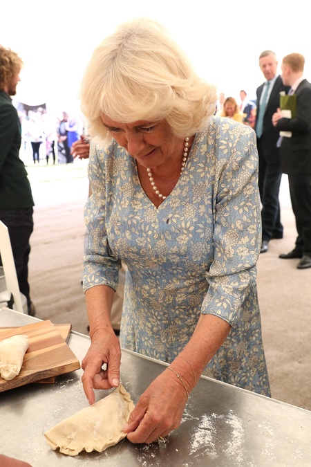 Ksiezna Camilla lepi pieroga, przyjecie z okazji 50-lecia piekarni Ginsters