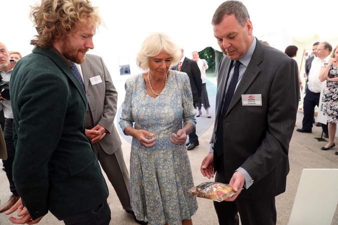 Ksiezna Camilla lepi pieroga, przyjecie z okazji 50-lecia piekarni Ginsters