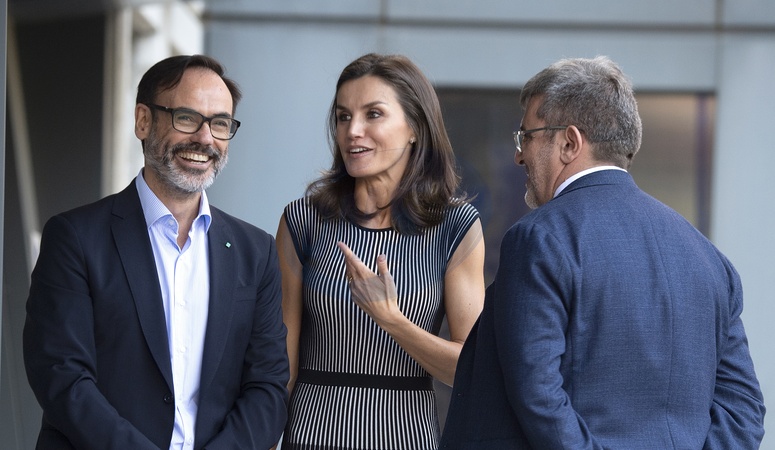 Krolowa Letizia w sukience w paseczki, wizyta w Fundacji Fundeu BBVA