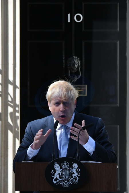 Boris Johnson - Nowy premier UK przemawia przed swoja siedziba