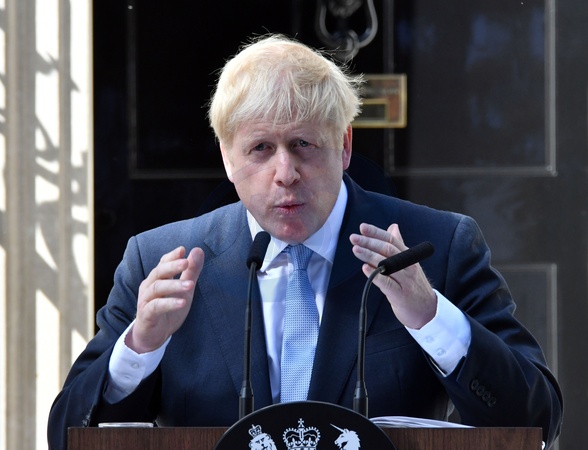 Boris Johnson - Nowy premier UK przemawia przed swoja siedziba